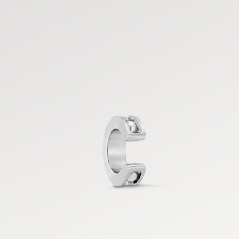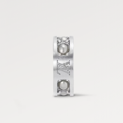 Pearls耳夾令堅實金屬呈現拉絲質感,為LV銘紋四周鑲嵌珍珠般的樹脂串珠,彰顯前衛風範和精湛匠藝。 可單獨佩戴彰顯舒朗格調,亦可與Pearls系列其他耳夾搭配相宜。