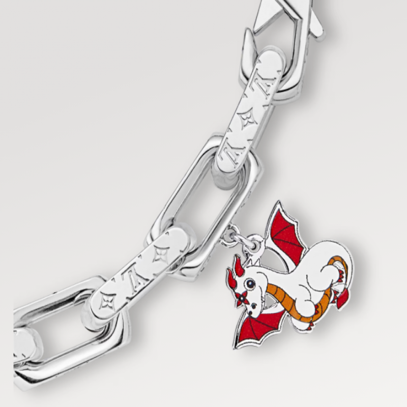 本款Monogram Chain項鍊以摩登筆觸串聯精鋼、再生樹脂和有機玻璃鏈環,為金屬鏈環鏤刻Monogram圖案,彰顯路易威登精湛匠藝。 LV字母再添品牌格調,與同款手鏈搭配相宜。